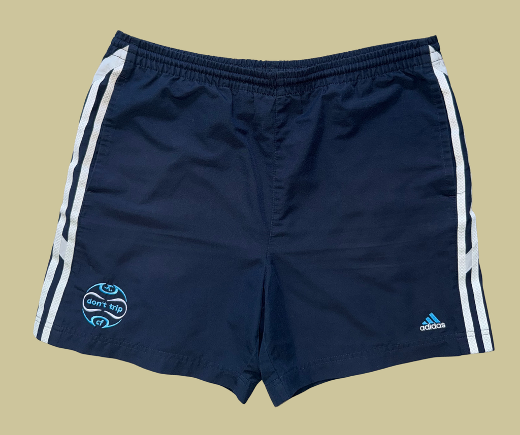 retro navy adidas training shorts with white/blue don't trip cf adidas-inspired embroidered design