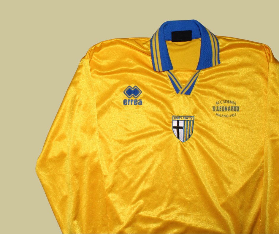 retro yellow errea template kit with parma-inspired don't trip cf embroidered design